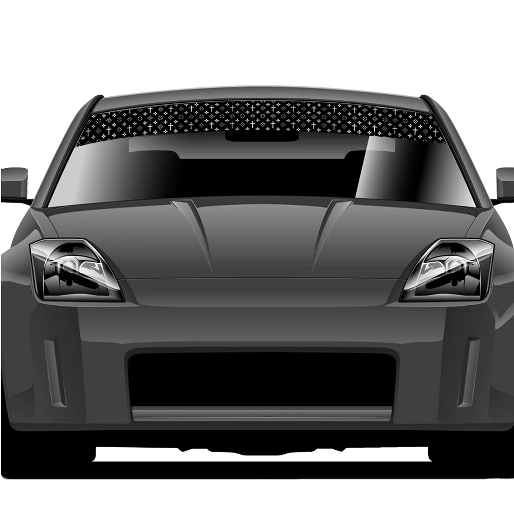 Enhance your car’s appearance with our ** Cross Sunstrip Banner**, featuring a stylish cross design surrounded by a repeating LV-style pattern. Perfect for those who want to add a touch of luxury and personality to their vehicle. This decal is made from high-quality vinyl, ensuring durability and a smooth finish on any surface. It's easy to apply, weather-resistant, and ideal for both interior and exterior use.